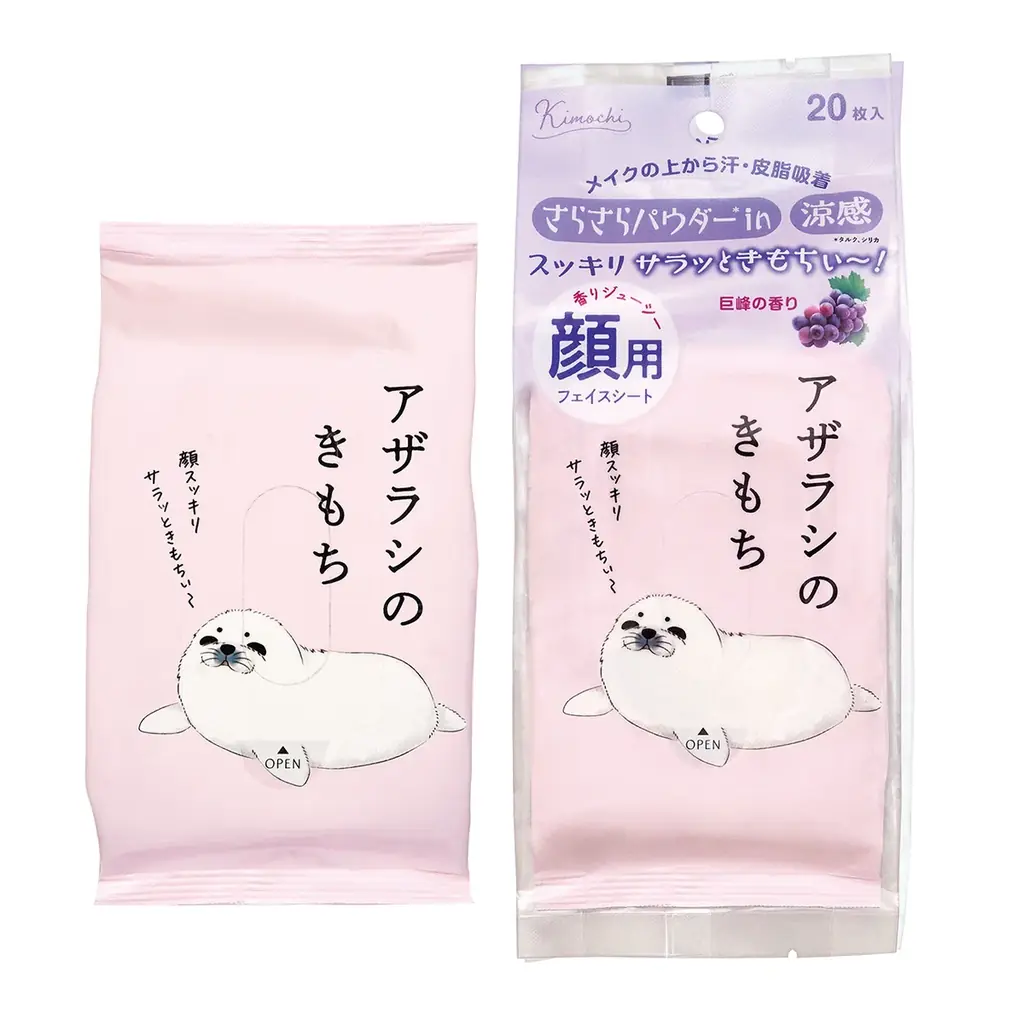 | キモチ 涼感フェイスシート | アザラシ(メントール不使用) | 20枚入り(W150×H200mm) | 582円 | 顔用、メイクの上からも使用可、タルク・シリカ配合 |