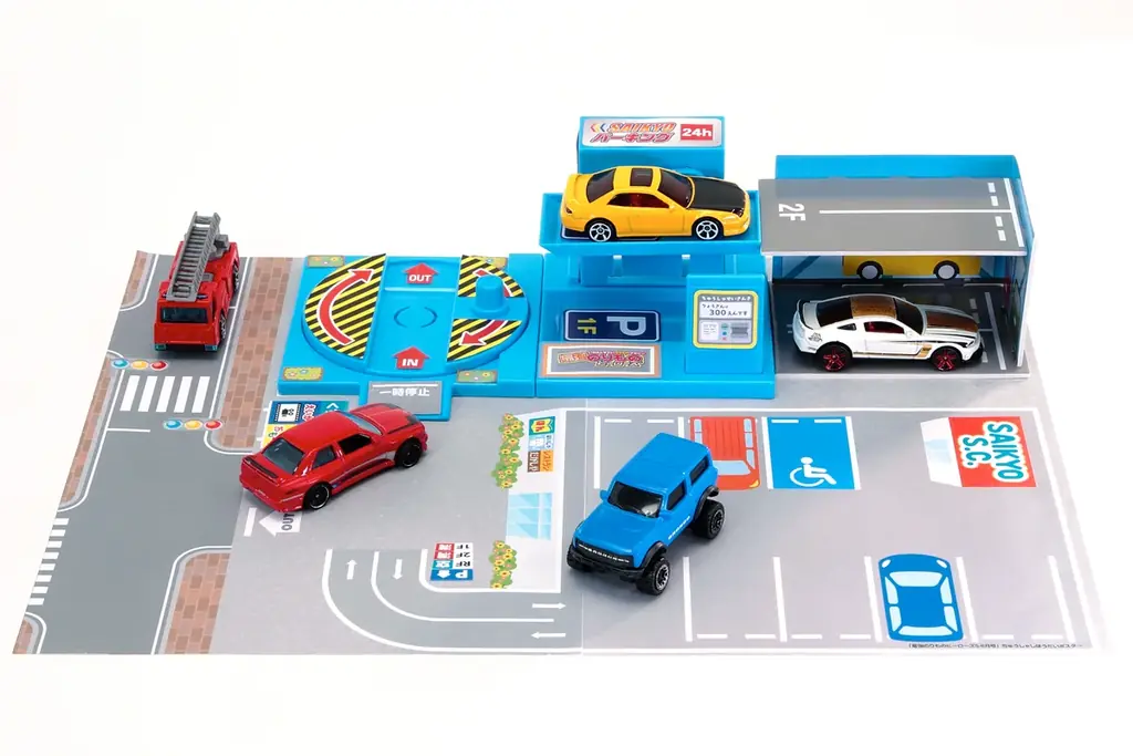- 付属ポスターとの連携:屋上駐車場ポスターを敷いて遊べる構成