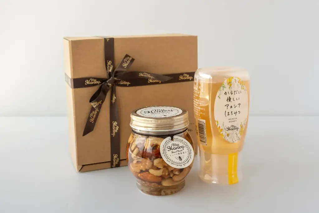 - 株式会社MY HONEY — ナッツの蜂蜜漬け200g&アカシアはちみつ300gのセット。アカシアはちみつとナッツの蜂蜜漬けを組み合わせたギフト。
