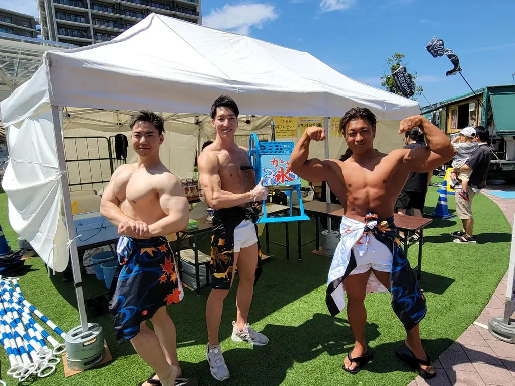 ブースには3~5名のマッチョが待機し、来場者は好みのメンバーを選んで体験できます。安全面や体重対応の基準は現場のスタッフが確認する場合がありますので、スタッフの指示に従う必要があります。