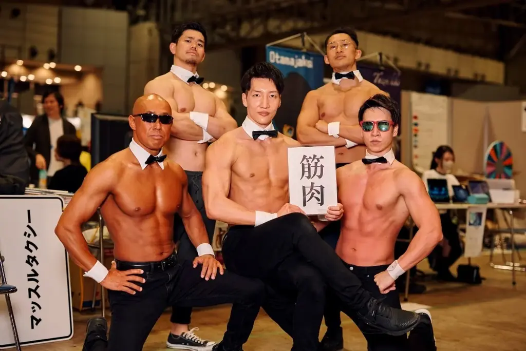 - 筋肉紳士が来場者を“乗車”させる体験型企画。移動を伴うサービスはイベント規定に依存するため、現場で提供内容が異なる場合があります。詳細はマッスルタクシーの紹介ページを参照。