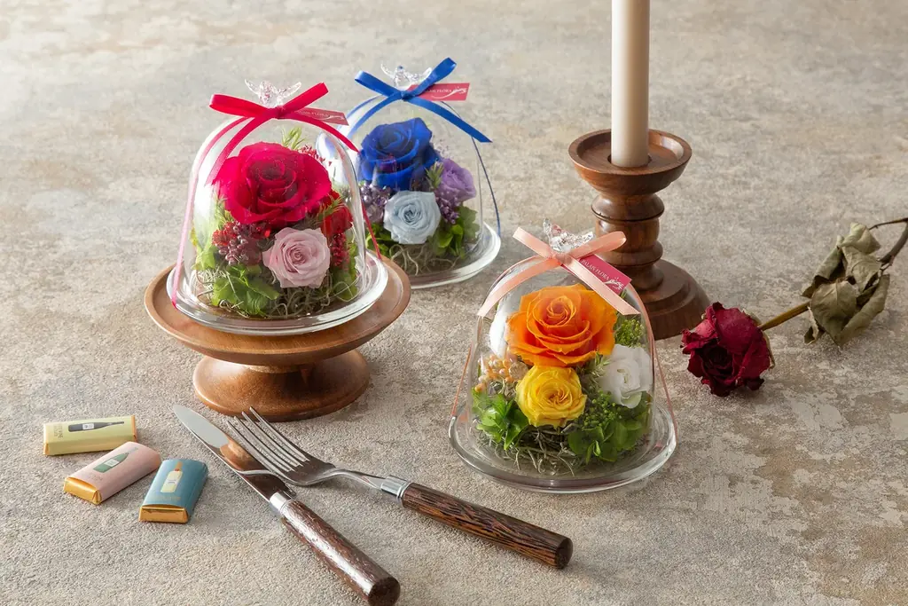 3. 〈パレフローラ〉プリザーブドフラワー バードドーム 価格:各11,000円