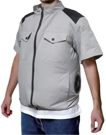 袖があることにより、太い血管が通る脇の下へ直接風を届けやすく、体温を効率的に下げる効果が期待されるデザインです。半袖のため腕の可動性を確保しつつ局所冷却を狙えます。