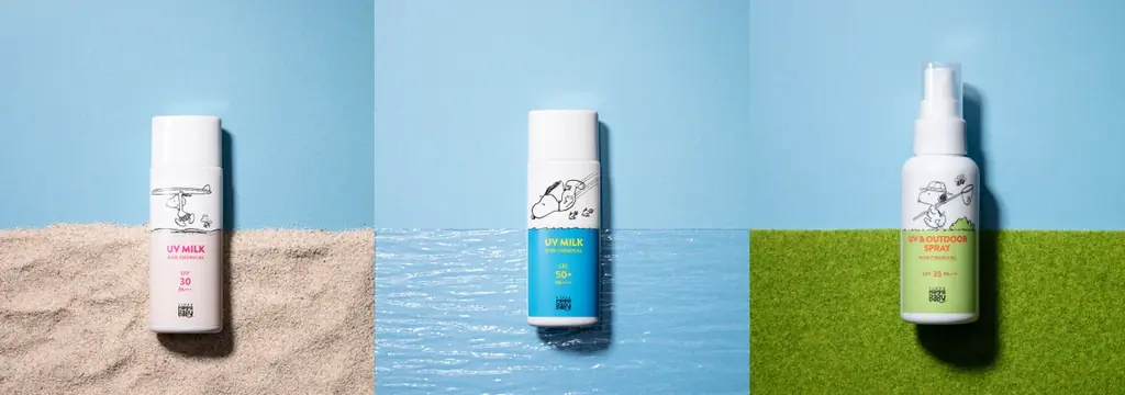 スヌーピーデザインで登場した、自然由来100%のママベビーUVシリーズ