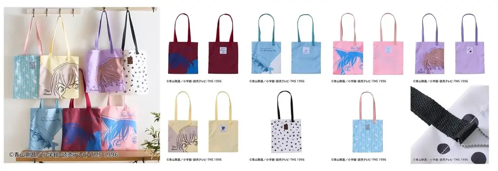 価格・仕様:価格は2,690円(税込)。全7タイプ(江戸川コナン、怪盗キッド、毛利蘭、灰原哀、安室透、コナンドット、キッドストライプ)。サイズは約37×40cm、持ち手の立ち上がり寸法:約35cmです。