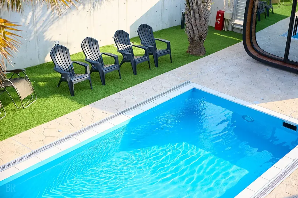 プールは敷地内に設置され、周囲に視線が届きにくいレイアウトにより完全なプライベート感が保たれます。利用にあたっては安全面の配慮がされており、家族連れでも安心して利用できる設備です。