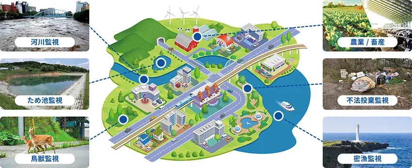 - 広域ネットワーク対応:LTE通信を利用したクラウド遠隔監視に対応し、PCやスマートフォンから専用閲覧サイトで画像確認ができるほか、平常時との比較表示、マスキング機能、タイムラプス機能も搭載しています。