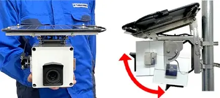 加えて、カメラの画角は上下・左右に調整可能で、ソーラーパネルの角度調整も行えるため設置後すぐに運用開始できる点が現場での大きなメリットです。現場における可搬性と即時性を両立させた設計が特徴です。