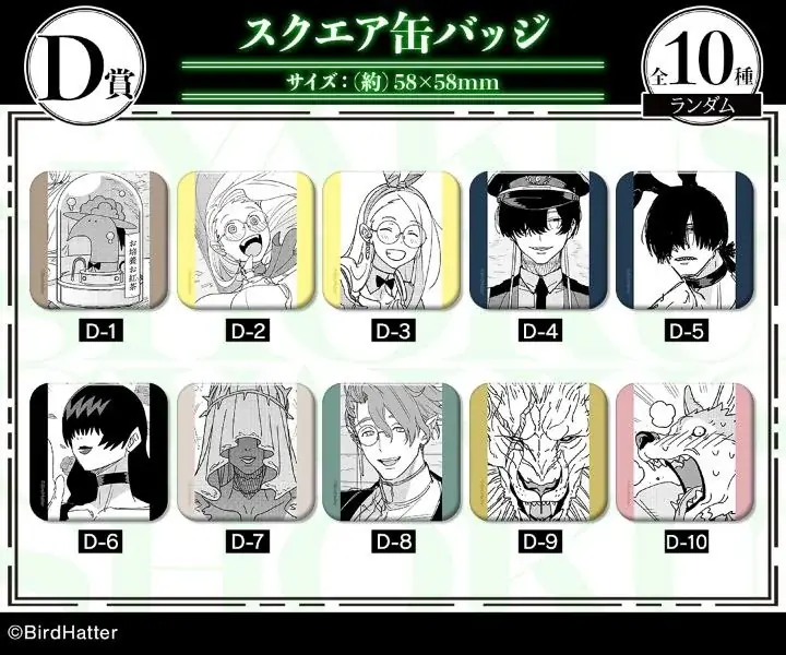 | 景品ラインナップ | A賞 F3号キャンバスボード(全3種)、B賞 マグカップ(全3種)、C賞 アクリルスタンド付きコースター(全10種)、D賞 スクエア缶バッジ(全10種)、購入特典 イラストカード(全10種) |