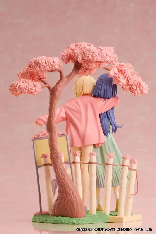 立体化されたのは「錦木千束」と「井ノ上たきな」で、イラストの情景を忠実に再現することを重視した造形が施されています。両者の躍動感や表情、衣装のディテールを活かしつつ、台座にも注力して春の情緒を演出しています。