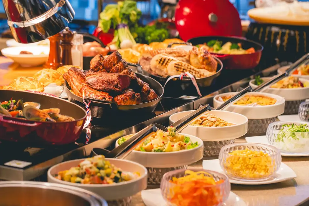 ディナーの営業時間は18:00〜22:00(最終入店21:00)とされており、メイン料理の提供に加えて、充実したブッフェを楽しめる構成になっています。特別な日の食事として十分な品数と選択肢が用意されています。