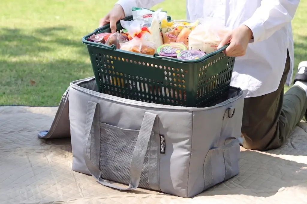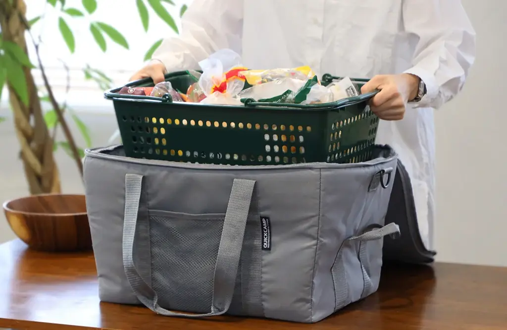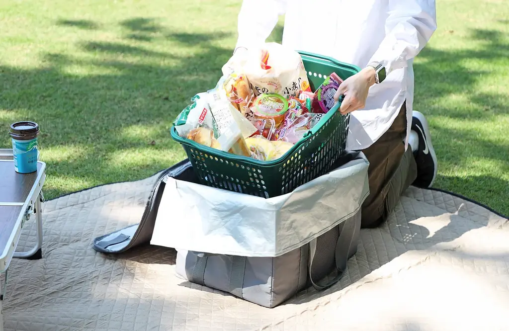 本製品は、ピクニックやBBQ、キャンプなどのアウトドア用途だけでなく、スーパーの買い物かごを丸ごと入れられる点を最大の特長としています。日常の買い物とレジャー用途を1つで兼ねる設計により、季節を問わず使いやすいユーティリティ性が求められるユーザーに向いています。