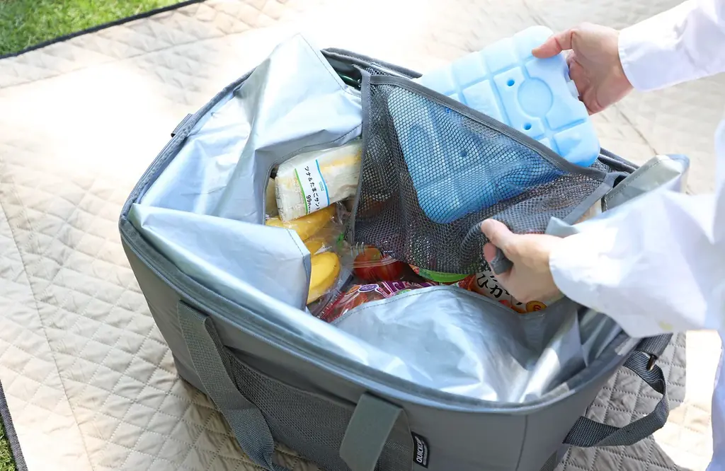 内部には保冷剤を安定して保持できるメッシュポケットを装備しており、保冷効果を長時間持続させる配慮がなされています。保冷カバーで食材を覆うことで、特に敏感な生鮮食品の温度管理がしやすくなります。
