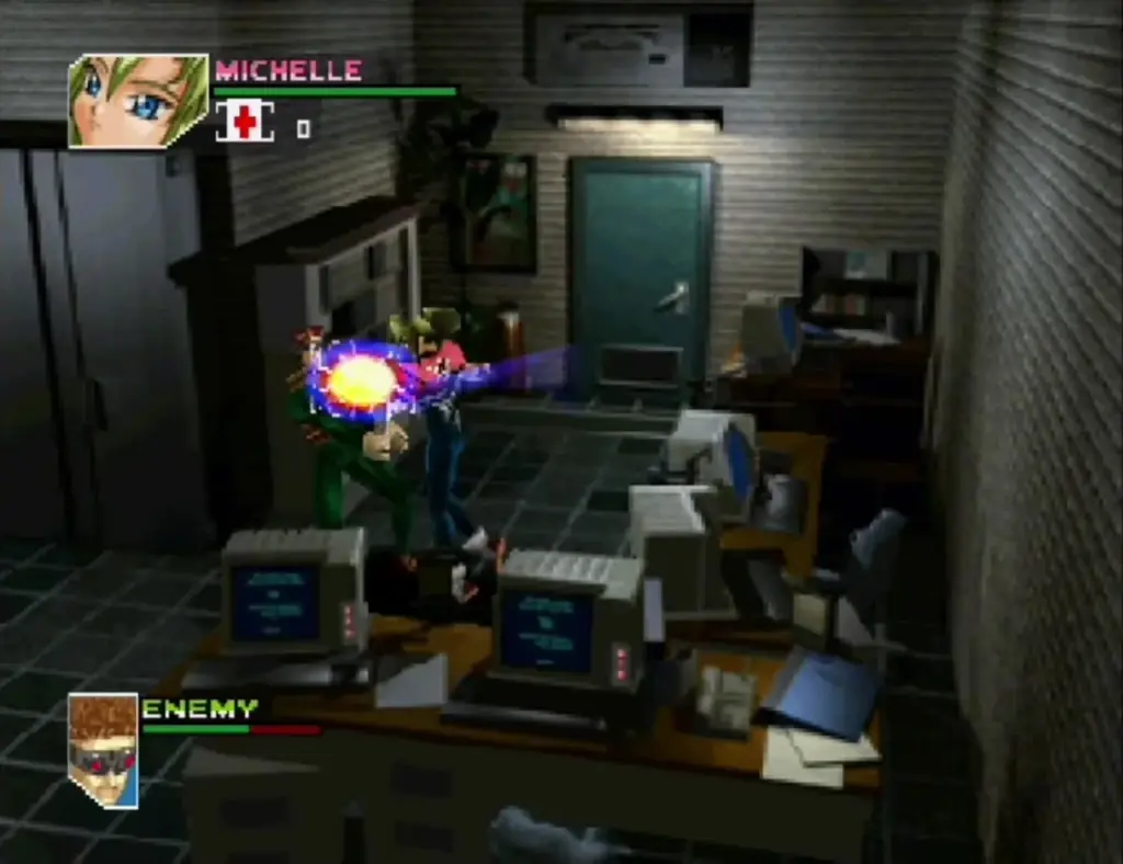 当局は事態の早期解決と博士の救出のため極秘に特殊部隊を投入。部隊には後に過酷な運命に巻き込まれていく人物として「アレックス」と「ミシェール」が含まれています。閉ざされたビル内部に潜む重武装の敵と罠を前に、知略と銃弾が交錯する救出作戦が描かれます。