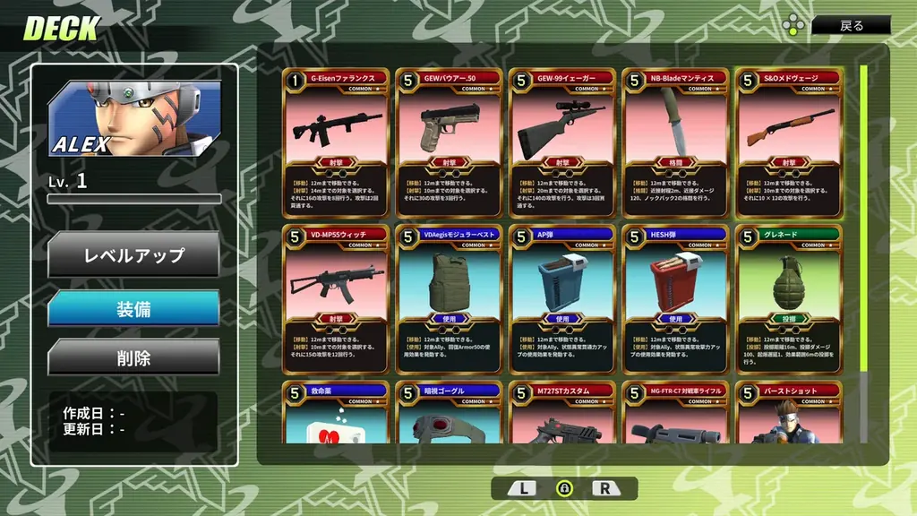 試合前に行うデッキ構築は本作の重要要素です。プレイヤーは操作するキャラクターの個性やプレイスタイルに合わせてデッキを作成でき、キャラクターごとにデッキを構築することが可能とされています。レベルアップによるカード追加や強化も用意され、プレイを通じてカードの充実度を高めることができます。