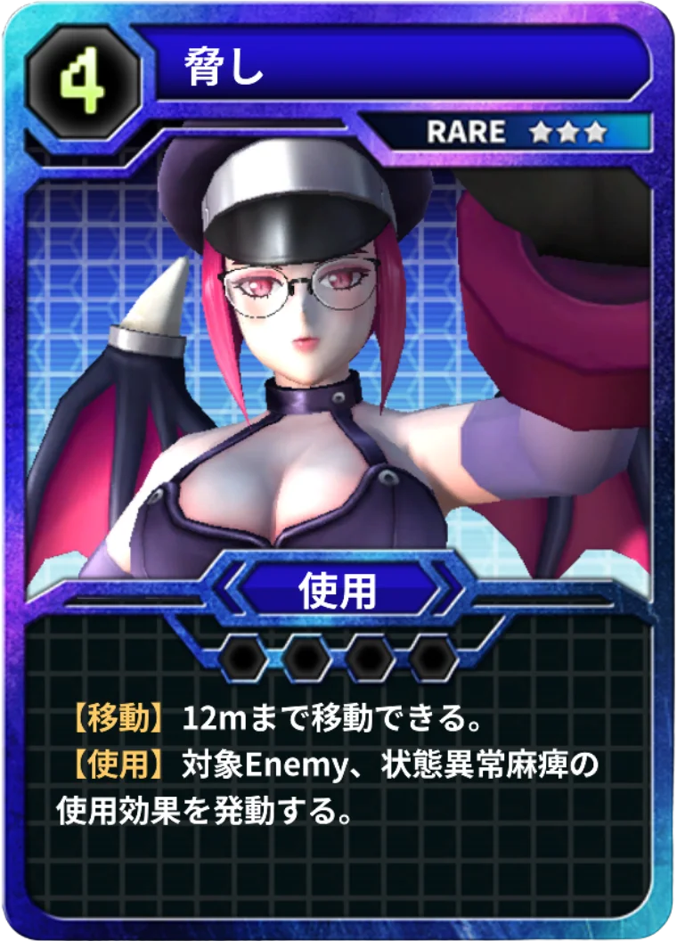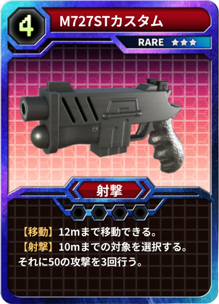 - 射撃:強力な遠距離攻撃を行うカード。遠隔からの制圧に適する。