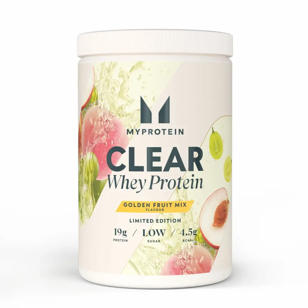 - クリア ホエイ プロテイン ゴールデンフルーツミックス:20食分、価格 7,790円、1食あたりたんぱく質19g、90kcal未満