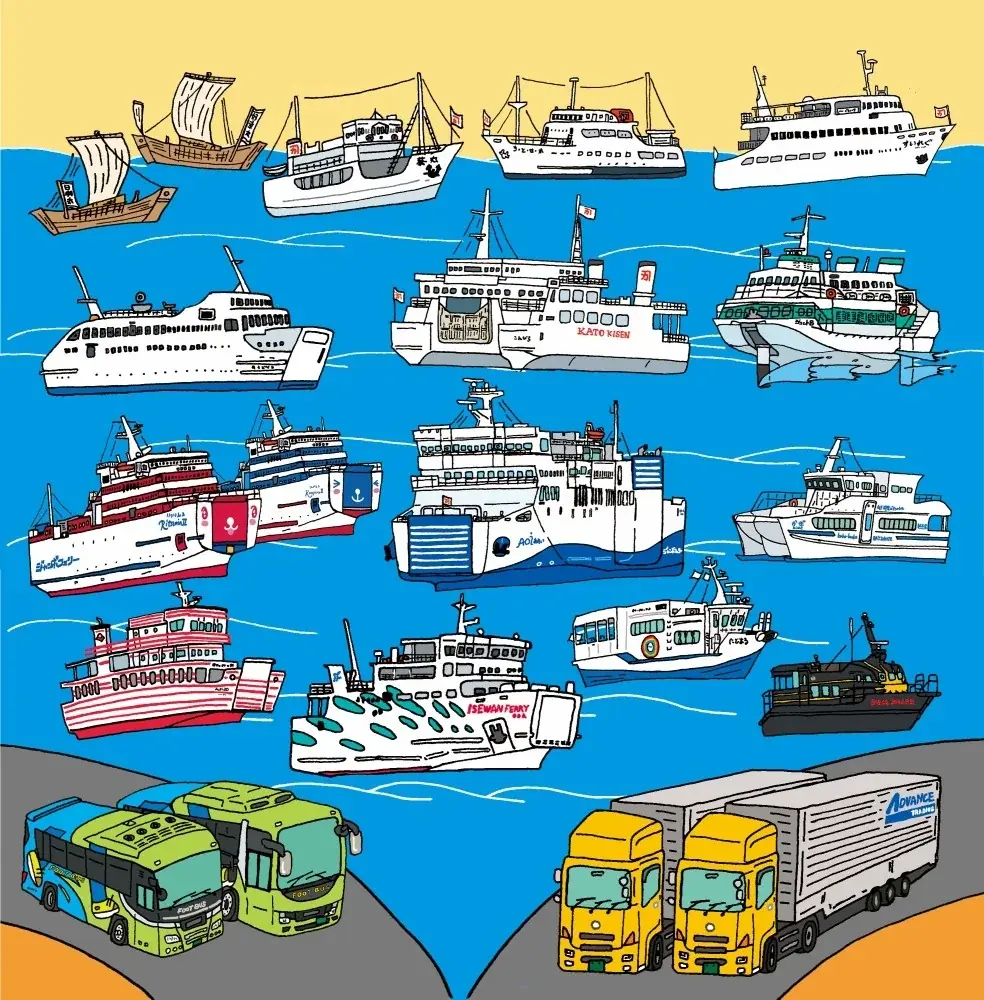 これらの構成要素は海上輸送だけでなく、陸上の高速バスや国際物流も含む多岐にわたる事業群で、地域の移動と物流を補完する役割を担っています。