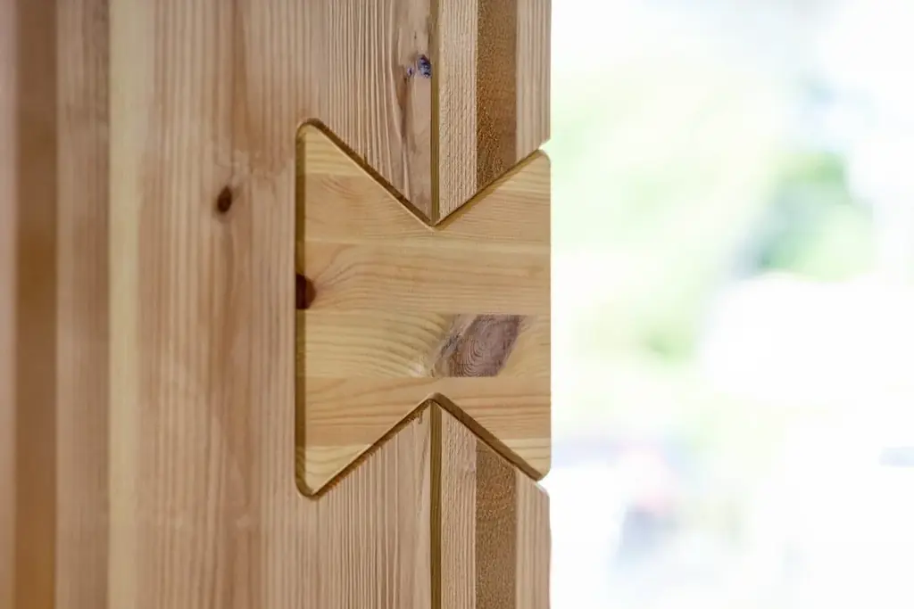 ブランドのロゴマークも継手(蝶蟻)をモチーフにしており、建築的な思想とブランド表現が一体となっています。こうした設計は、素材の地産地消や持続可能性、メンテナンス性などを総合的に考えた上で選択されています。