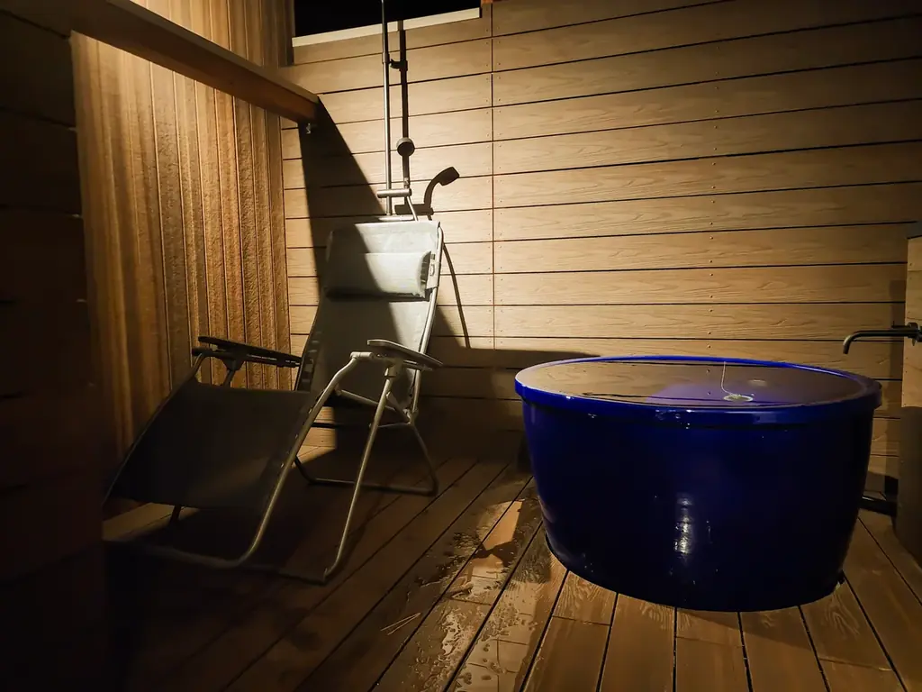 施設内にはプライベートサウナを備え、屋外には水風呂・露天風呂兼用の屋外風呂が設置されています。外気浴とあわせて“ととのう”時間を自分たちのペースで楽しめることが想定されています。好きな時間に入浴し、休み、再び入るという滞在が可能です。
