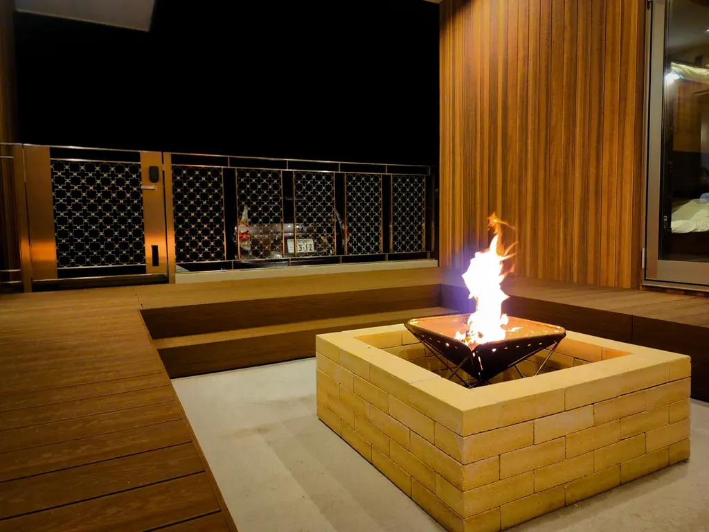 半屋外スペースでは焚火を囲む時間が用意され、BBQ対応のグリル貸出も行われます(ただし食材・炭等は持参)。焚火と木の温もりを感じる室内空間が組み合わさり、滞在全体を通じた時間の価値を高めます。