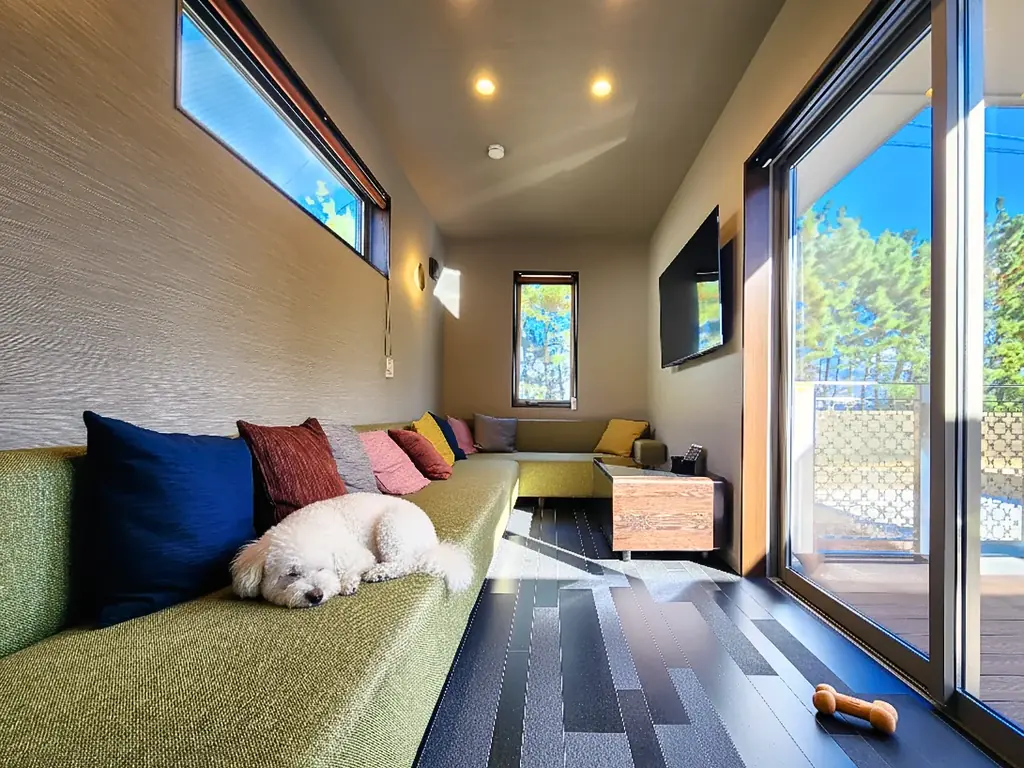 宿泊は一棟貸しのヴィラタイプで定員は6名。プライバシーを重視しつつ、家族旅行や友人同士、記念日など多様な用途に対応します。屋外焚火やBBQスペース、プライベートサウナといった設備を通じて、滞在そのものが旅の体験の中心となる設計です。