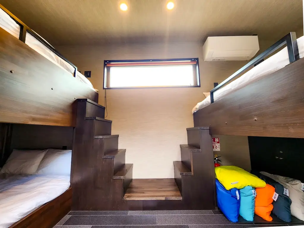 | 定員・間取り | 定員6名・リビング、寝室(クイーン1、ダブル2)、脱衣所、風呂場、トイレ |