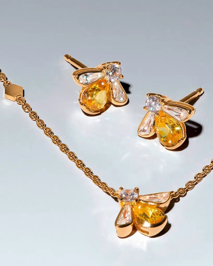 - ジルコニアをあしらったミツバチ:献身と強さを象徴。細部にわたる装飾が施され、チャームやリングで表現されます。