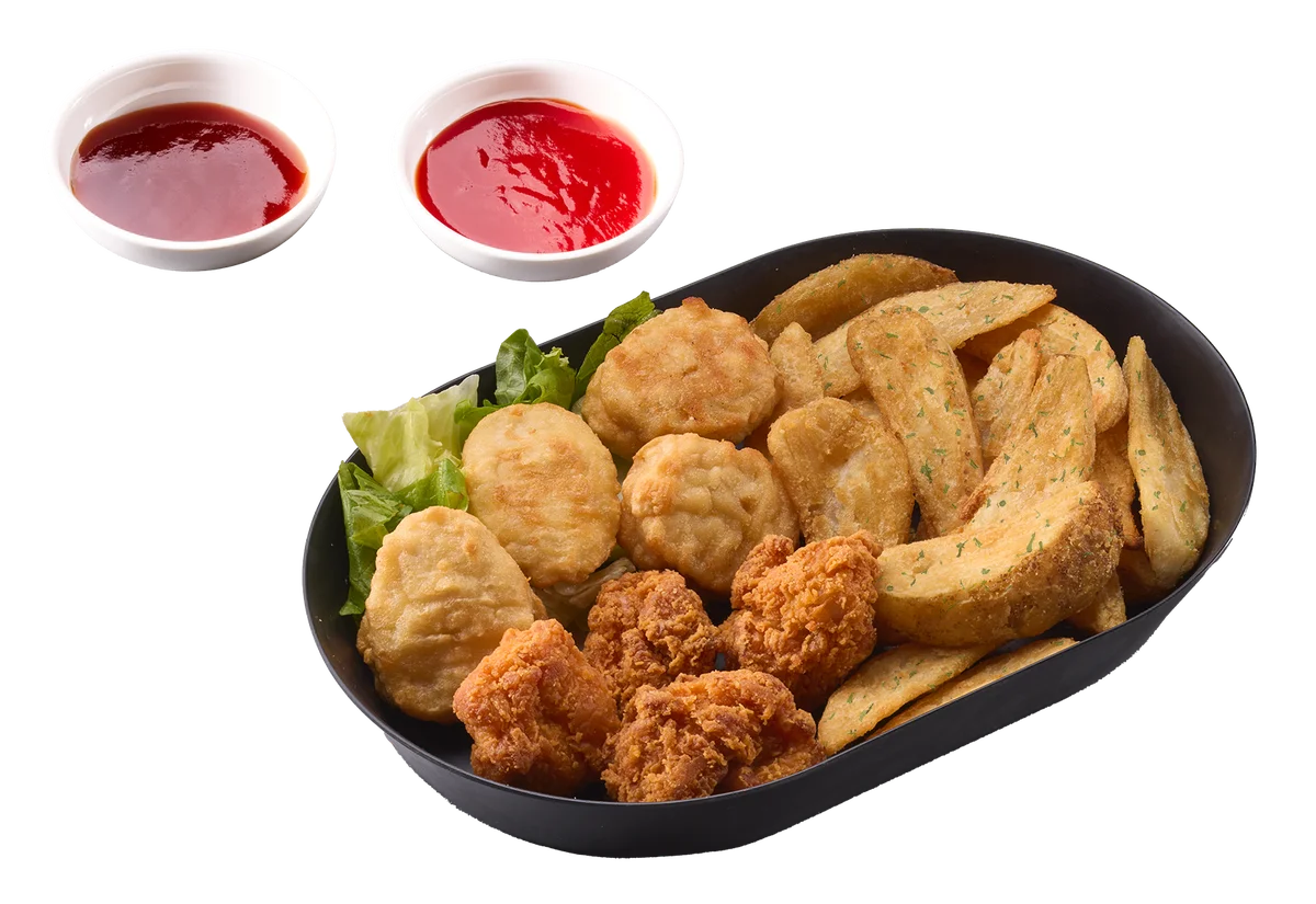 パーティーボックスはポテトフライ、ジューシーからあげ、チキンナゲットの3種類を一度に楽しめる構成です。ポテトは皮付きで厚切り、からあげは二度揚げによるサクッとした食感と肉の旨み、ナゲットはスナック感覚で食べやすい点が特徴とされています。これらはピザとの相性を考慮して選ばれています。