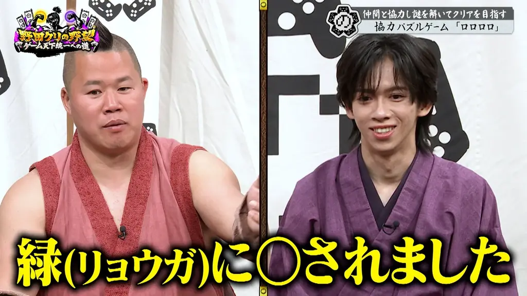 今回プレイされるのは、プレイヤー同士の緻密な連携と高いゲームIQが求められる協力パズルゲーム「ロロロロ」である。リョウガはその実力を以て番組側の「野田軍入隊」を目指すという流れで臨むが、番組中の人物配置により波乱が生じる。