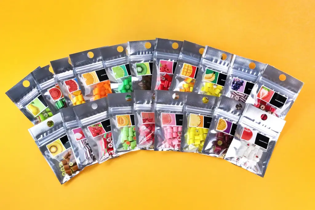 新店舗の中心となるのは、20種類以上のフルーツフレーバーから選べる単品キャンディBAGです。各フレーバーは通常品よりも量を抑えた20gサイズで用意され、定番の味に加え店舗限定のフレーバーもラインナップされます。