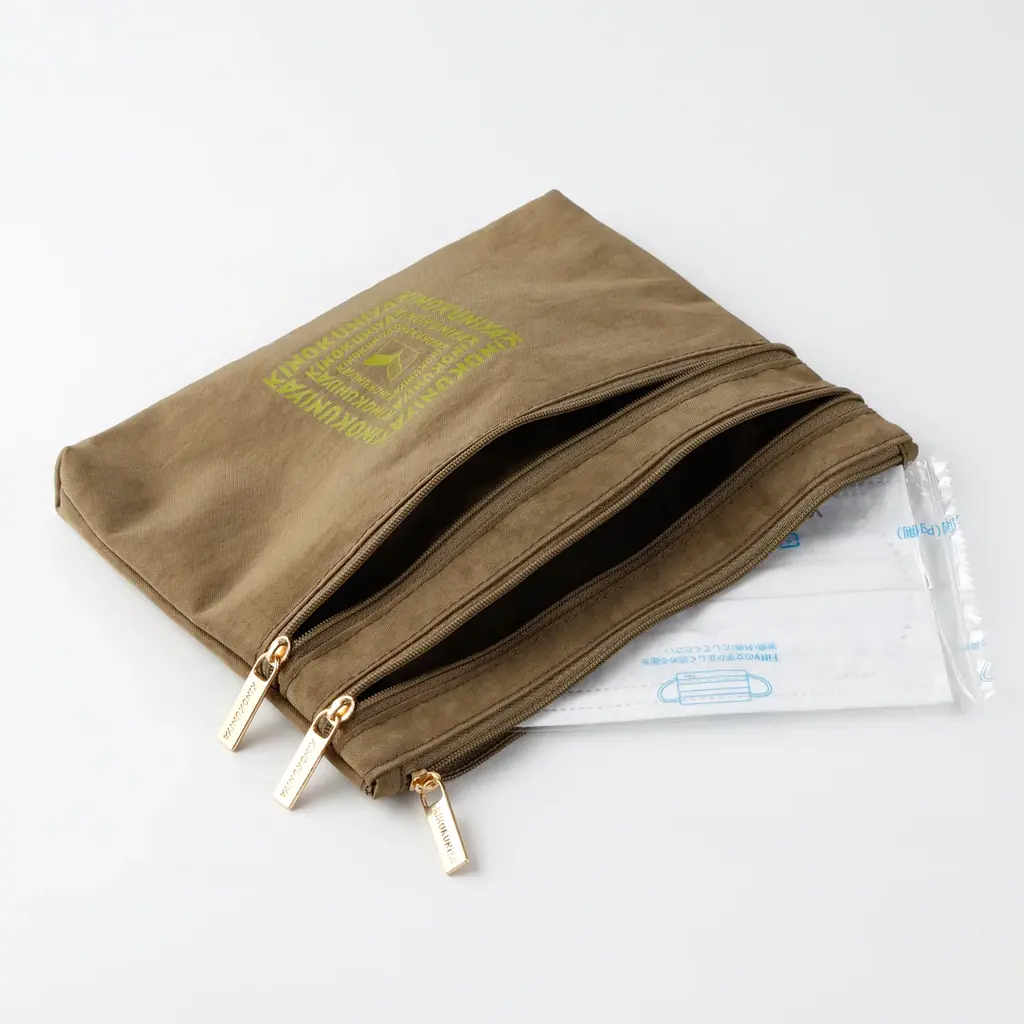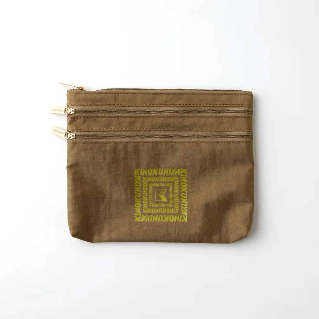 3連ポケットのポーチは3つに分かれた収納スペースにより、イヤホンや充電ケーブル、文具など細かいものを分けて収納できます。取り出しやすさや見通しの良さを重視した設計で、紀ノ国屋オリジナルのファスナーがアクセントになっています。