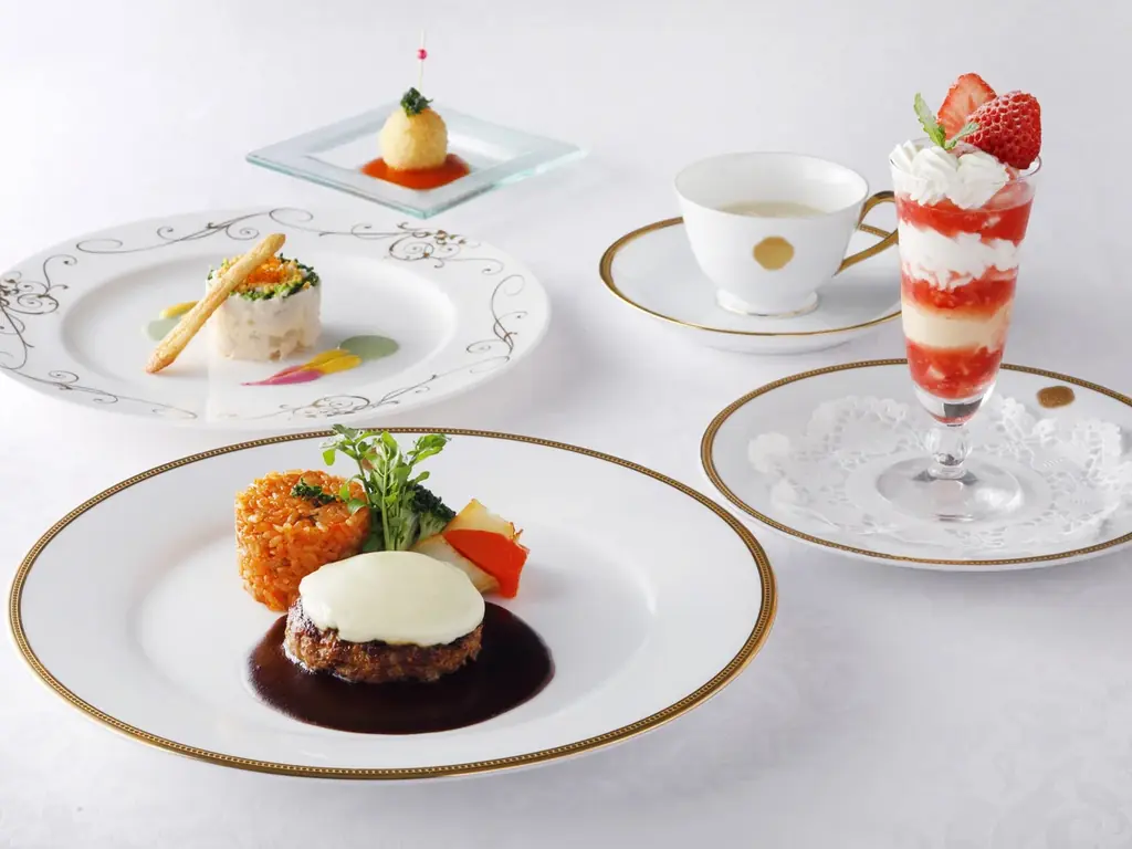 | コースの主な構成 | アミューズ:小さなクラブクロケット/前菜:やわらかチキンとポテトサラダのプレッセ/スープ:コーンポタージュ/メイン(チキンライス付):天使海老のフライまたはチーズハンバーグ(和牛フィレは+3,000円)/デザート:ミニパフェ |