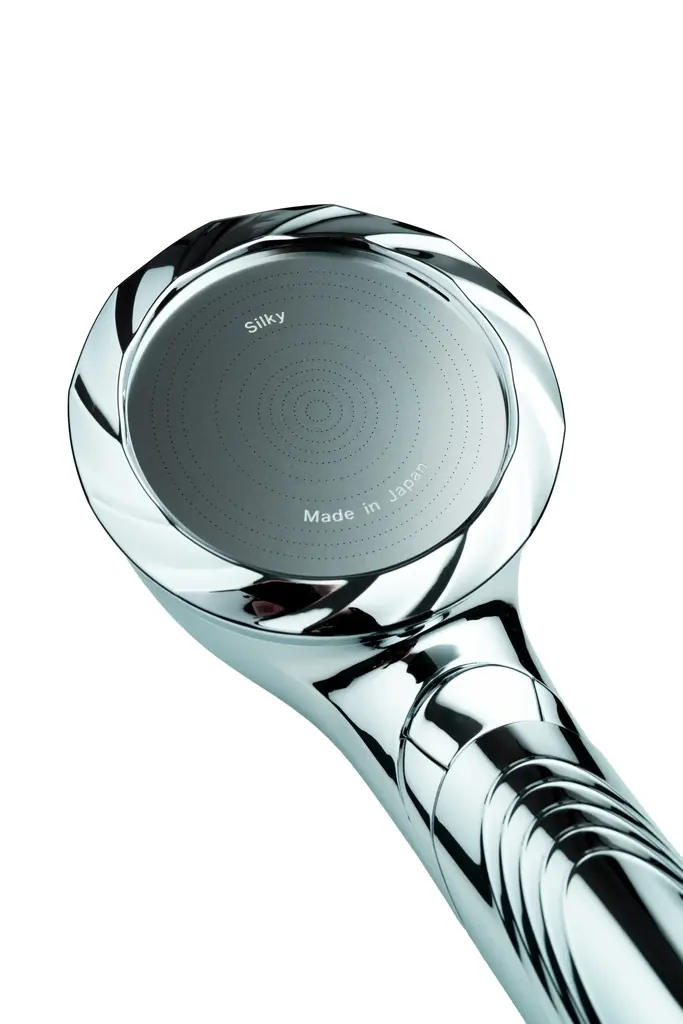 KINUJO Silk Rich Showerは、精密に設計された777個の極小ホールにより、シルクのようになめらかな水流(「シルクリッチ水流」)を生成します。肌あたりがやさしく、毛穴の皮脂や古い角質をやさしく浮かせて落とすことを重視した設計です。