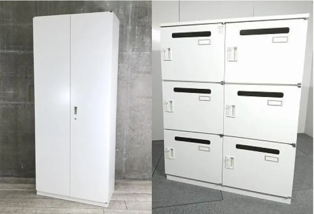 収納家具は容量と施錠機能、投函口の有無など業務に合わせた仕様のものが用意されています。ハイキャビネット等は書類管理に便利です。