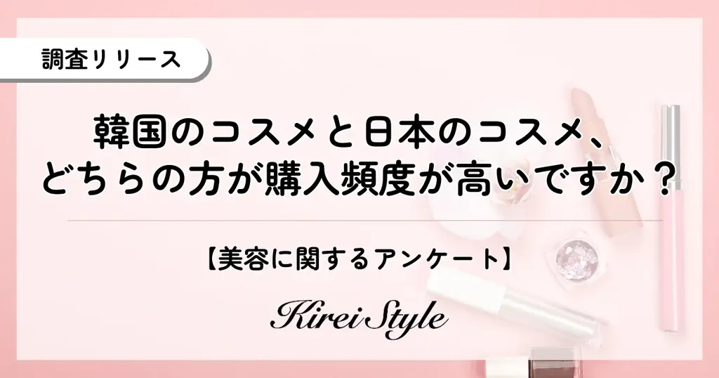 調査方法はインターネットによるリサーチで、居住地は全国を対象としています。質問の中心は「韓国のコスメと日本のコスメ、どちらの方が購入頻度が高いですか?」という単一質問で、選択肢は以下の4つでした。