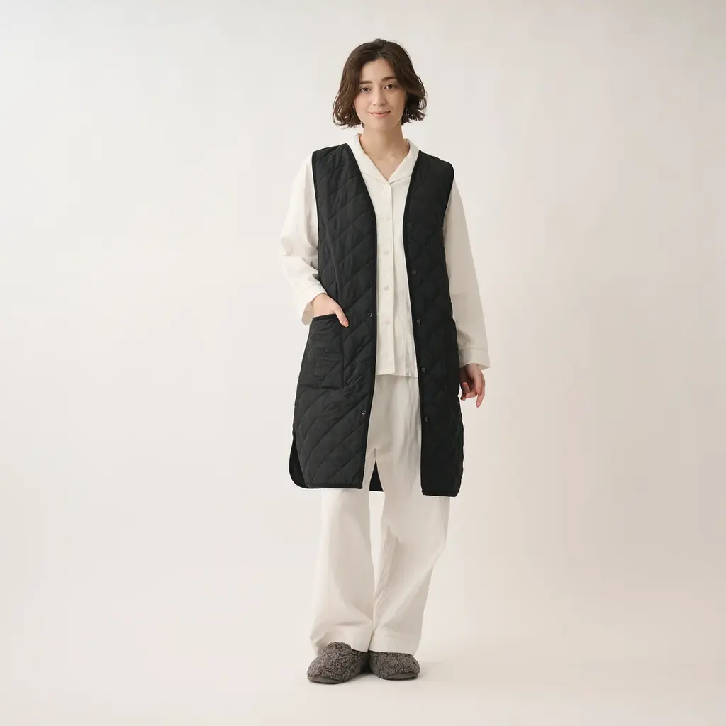 ケユカリラックスウェア 撥水中綿あたたかキルトロングベスト