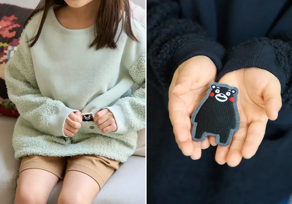 Golden Bearとくまモンの取り組みは、服から始まる家族の「しあわせ」を追求する活動として今年で7年目を迎えます。熊本県の「しあわせ部長」として広く知られるくまモンの日々の活動に共感し、寒い季節に向けた実用的かつ遊び心あるアイテムとして完成させたのが本コラボレーションのフリースです。