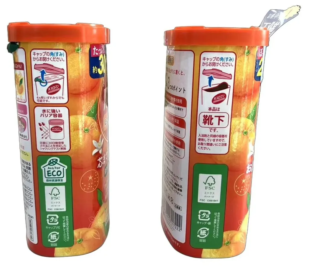 | 注意事項 | 入浴剤容器そっくりのため取り間違いに注意。蓋の点字表示あり。長時間着用や皮膚トラブル時は使用中止を検討 |