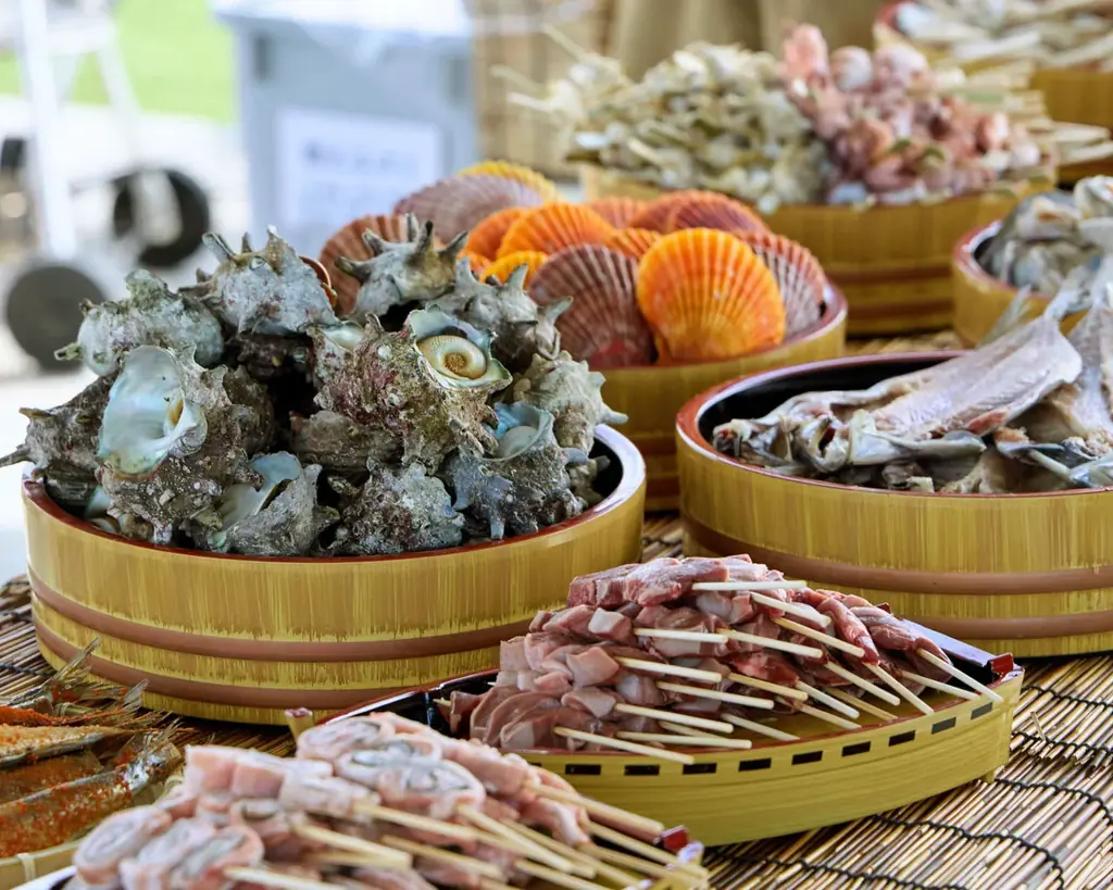 特設会場は大型テントで暖かく営業する仕様とされており、冬場の屋外販売に配慮した運営が行われます。牡蠣以外にも市場や浜から直送される新鮮な海鮮や、お肉の串、サイドメニューが豊富に用意されています。