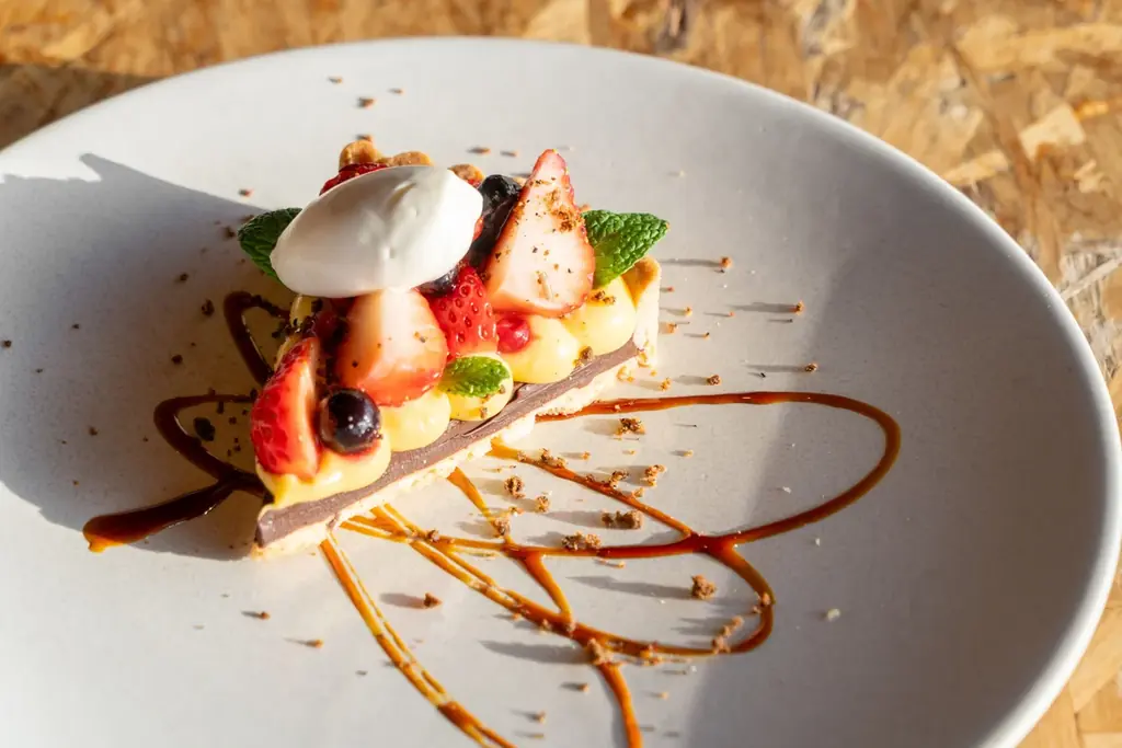 月替わりメニューやケーキは旬の果実や地元食材を意識しており、味わいだけでなく見た目の華やかさや提供の演出も重視されています。写真映えする盛り付けや、ライブでの仕上げなど、食事が一連の体験になるよう配慮されています。