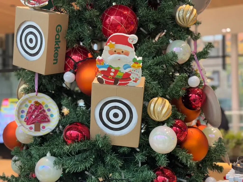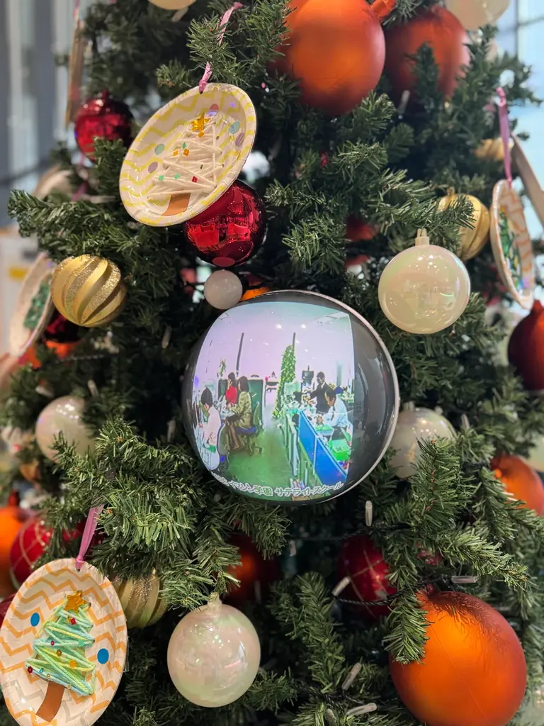 また、Gakkenこどもえんの園児たちが手作りしたオーナメントもツリーを彩り、展示に温かみを添えています。こうした地域やグループ内の参加を促す要素も本企画の特徴です。